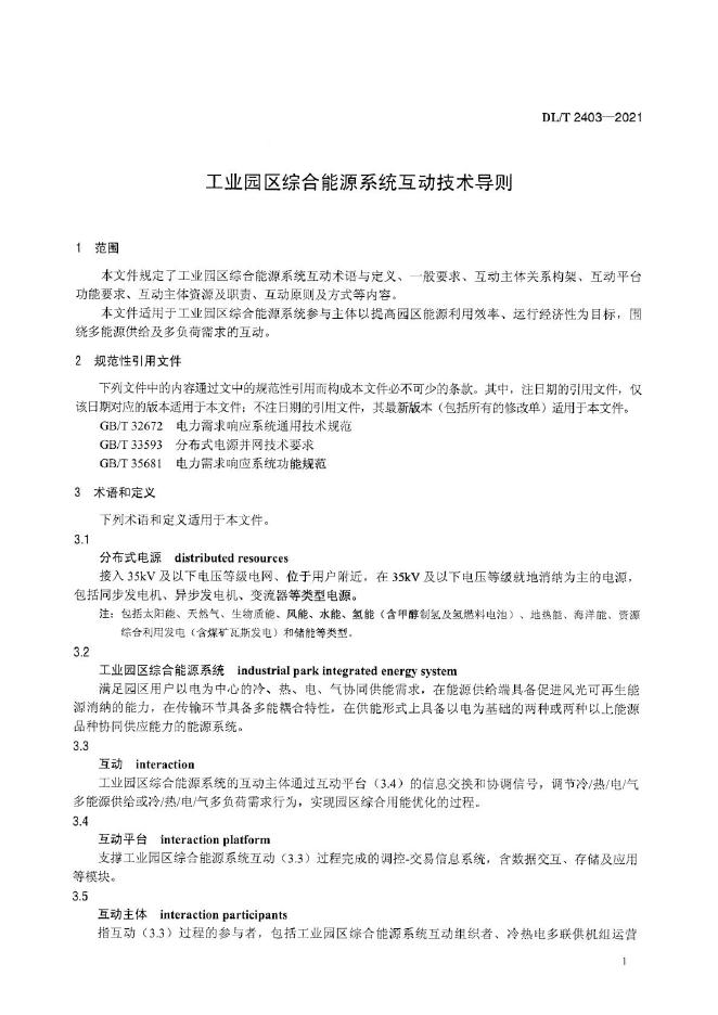 DL/T 2403-2021 工业园区综合能源系统互动技术导则