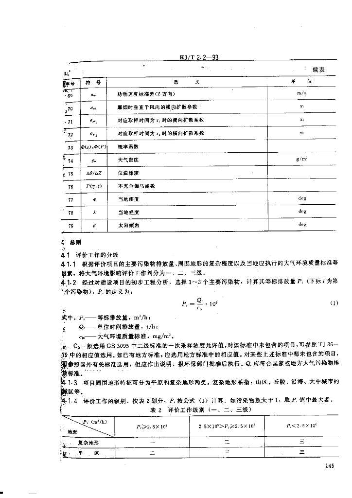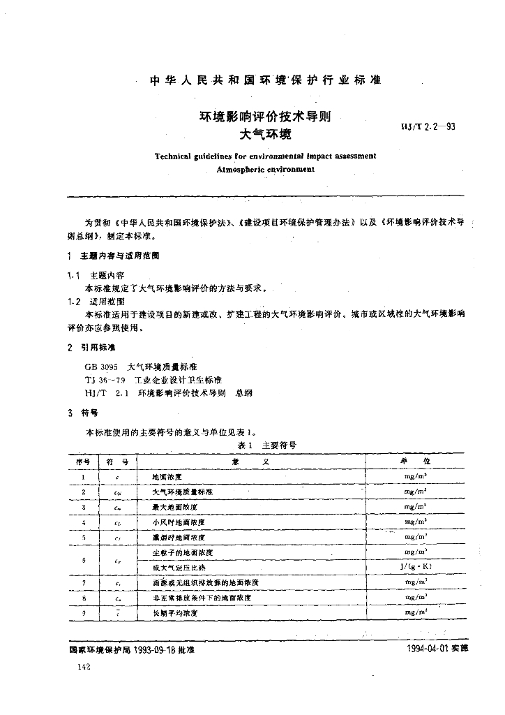 HJ/T 2.2-1993 环境影响评价技术导则 大气环境