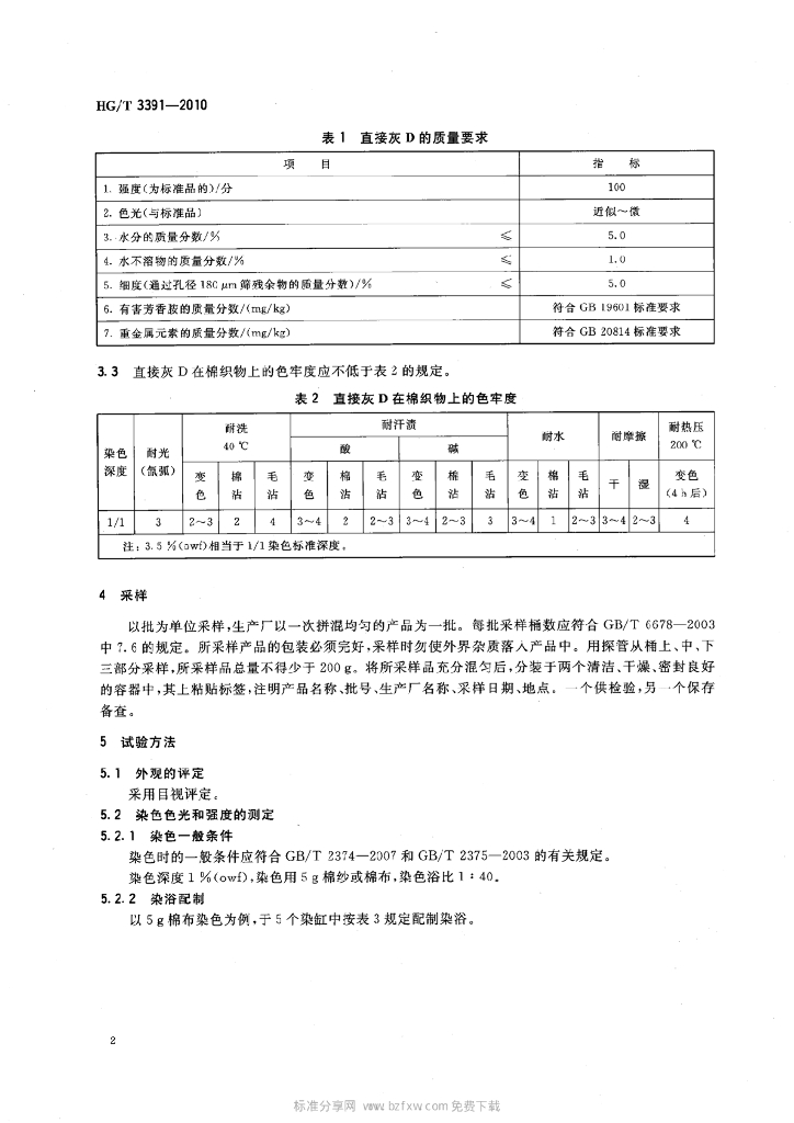 HG/T 3391-2010 代替 HG/T 3391-1999 直接灰 D(C.I. 直接黑 17)