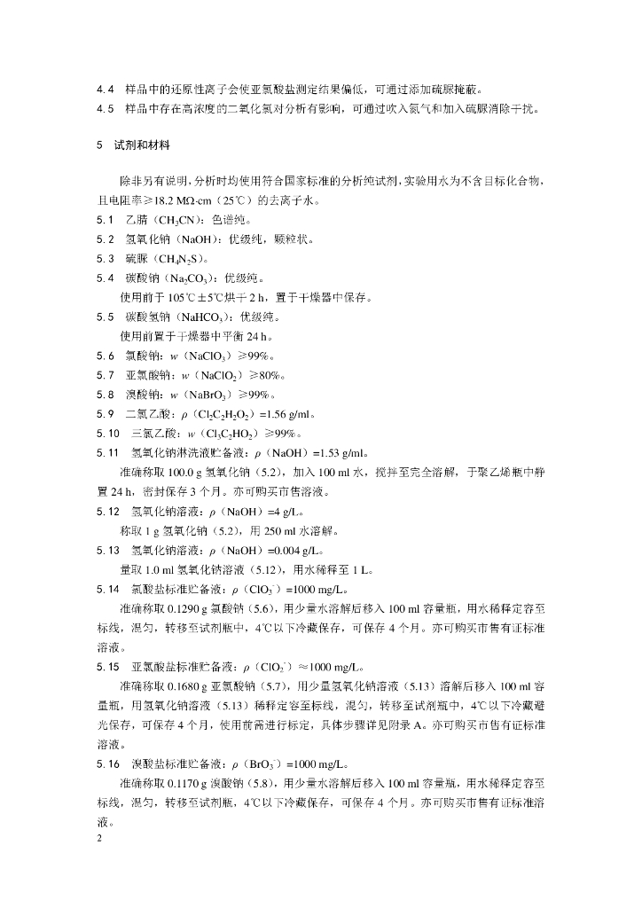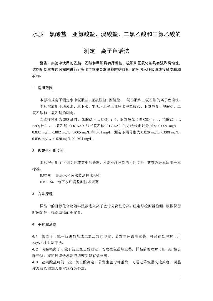 HJ 1050-2019 水质 氯酸盐、亚氯酸盐、溴酸盐、二氯乙酸和三氯乙酸的测定 离子色谱法