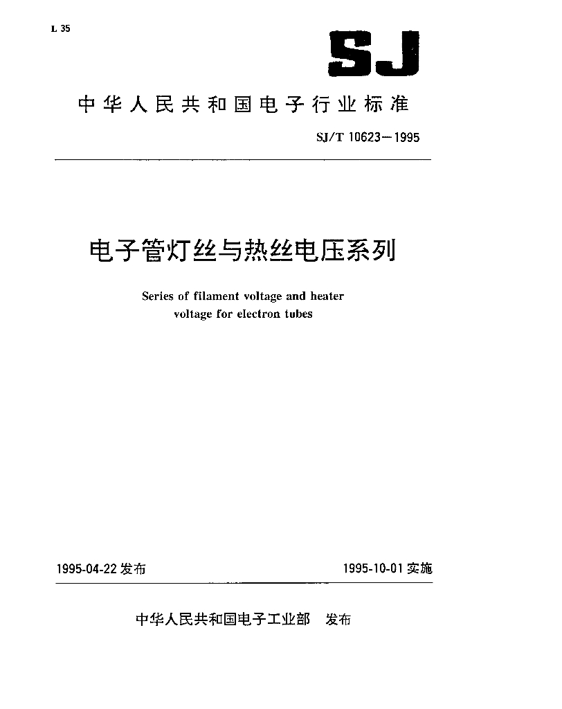 SJ/T 10623-1995 电子管灯丝与热丝电压系列
