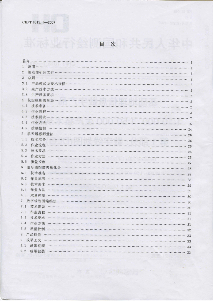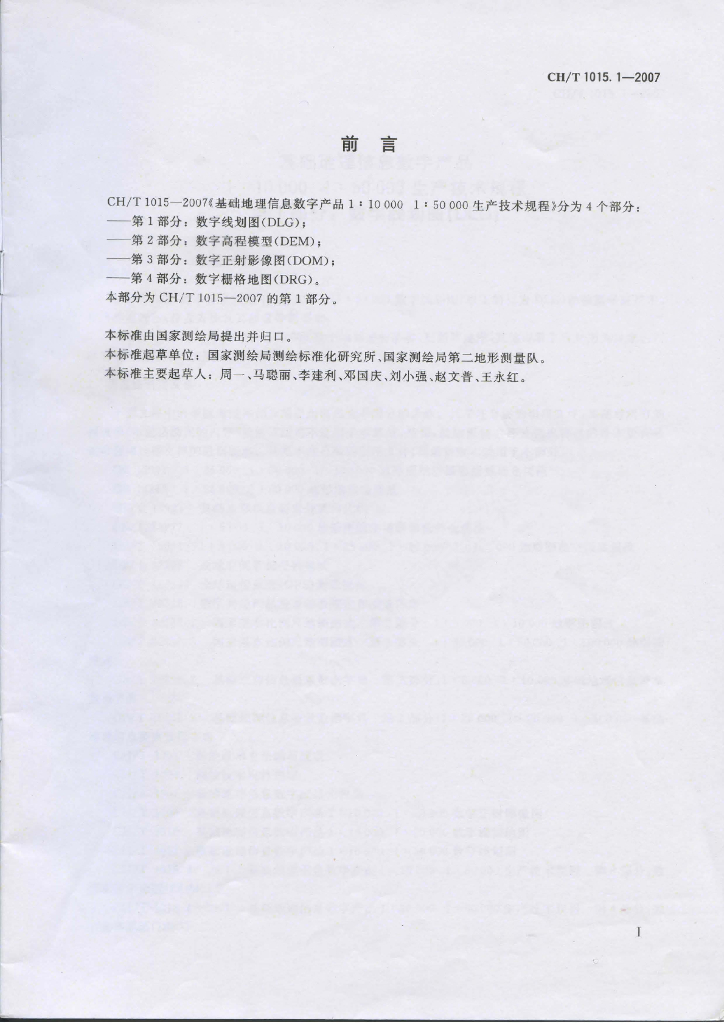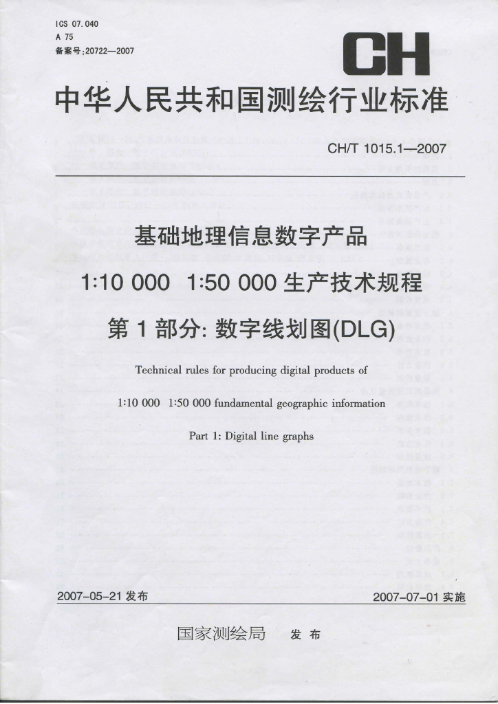 CH/T 1015.1-2007 基础地理信息数字产品1:10 000 1:50 000生产技术规程 第1部分:数字线划图(DLG)