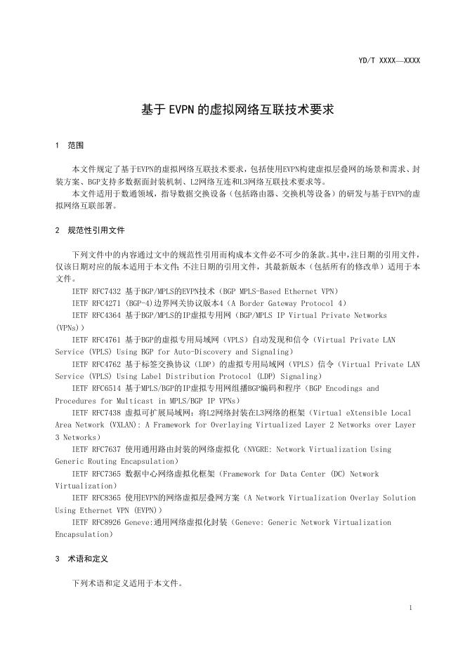 YD/T 4798-2024 基于EVPN的虚拟网络互联技术要求