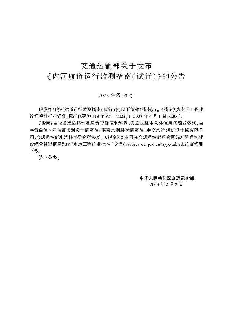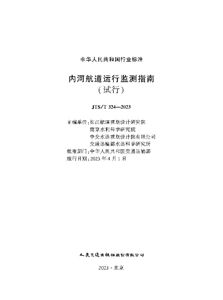 JTS/T 324-2023 内河航道运行监测指南(试行)