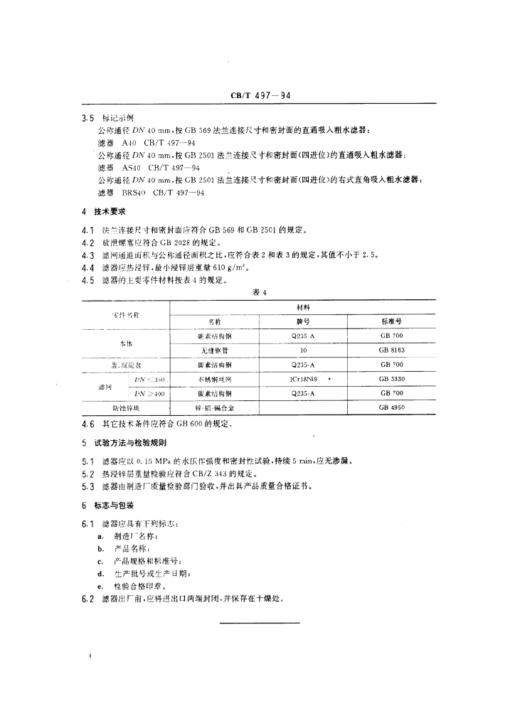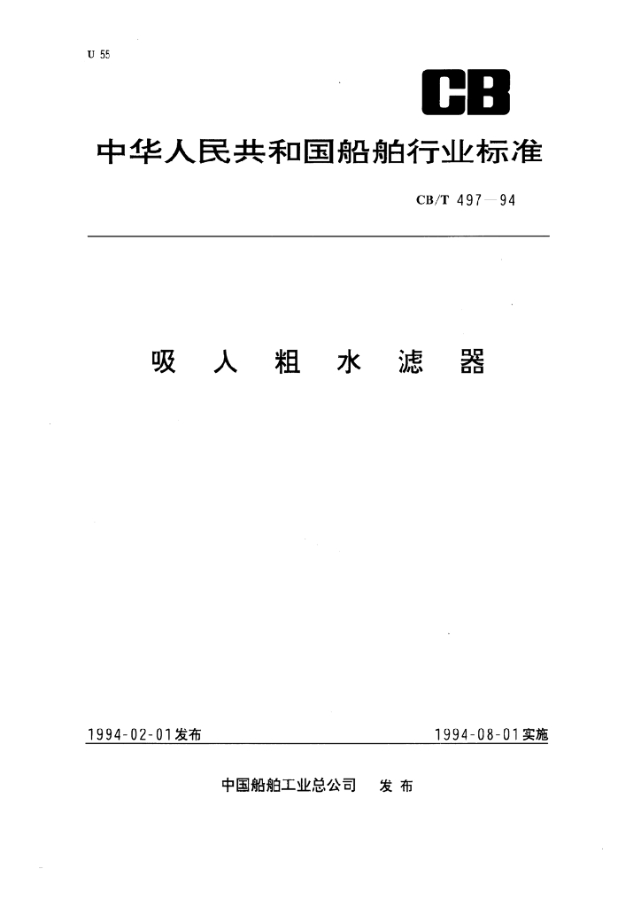 CB/T 497-1994 吸人粗水滤器