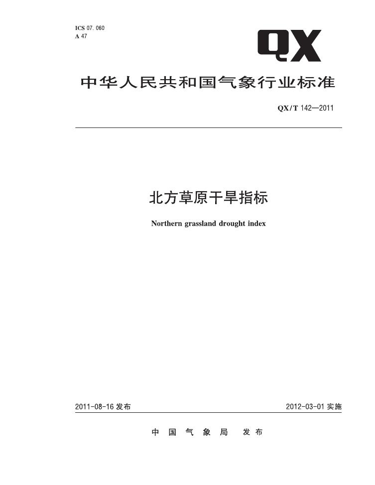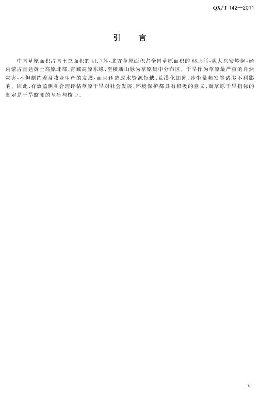 QX/T 142-2011 北方草原干旱指标