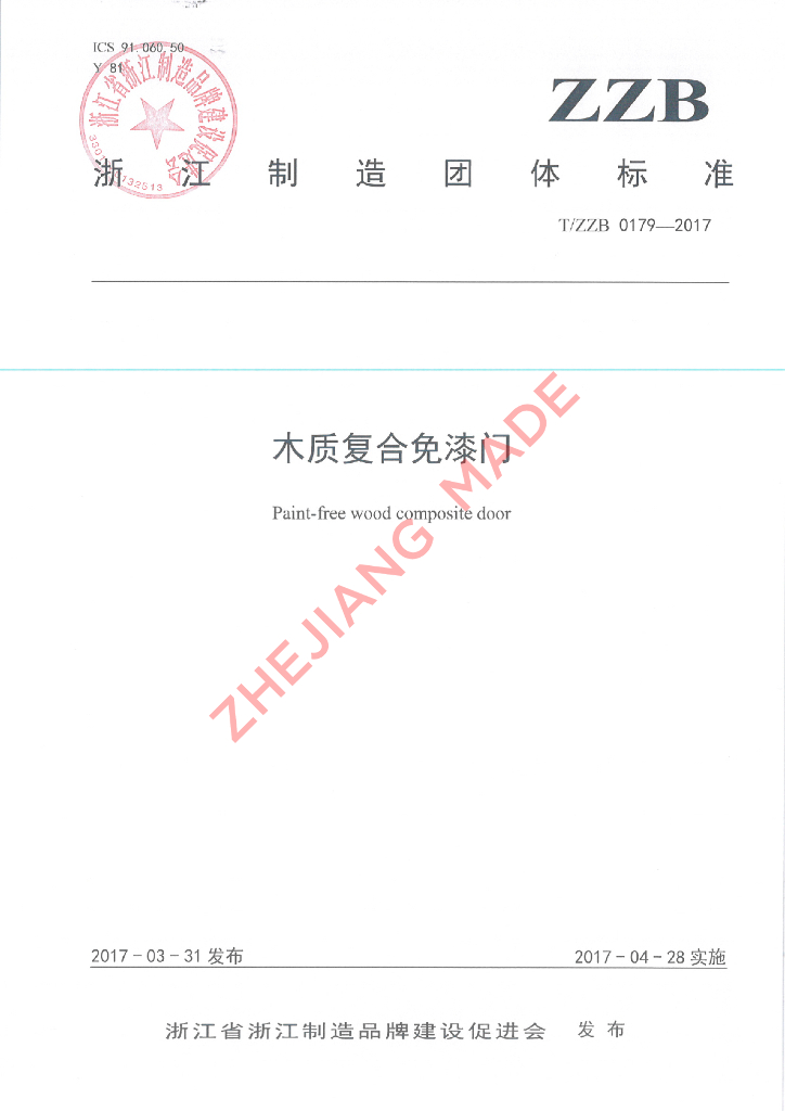 本标准由衢州市质量技术监督检测中心牵头组织制订。、本标准主要起草单位:浙江金凯门业有限责任公司。、本标准参与起草单位:江山欧派门业股份有限公司。