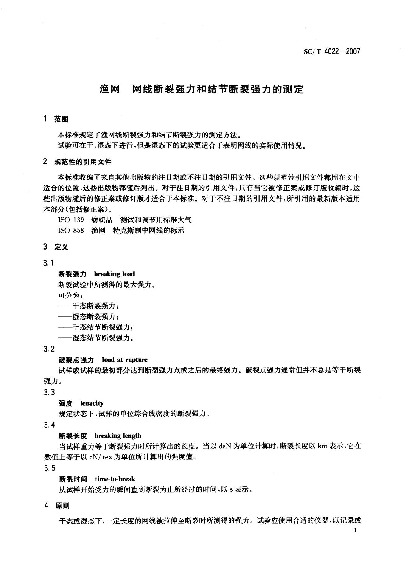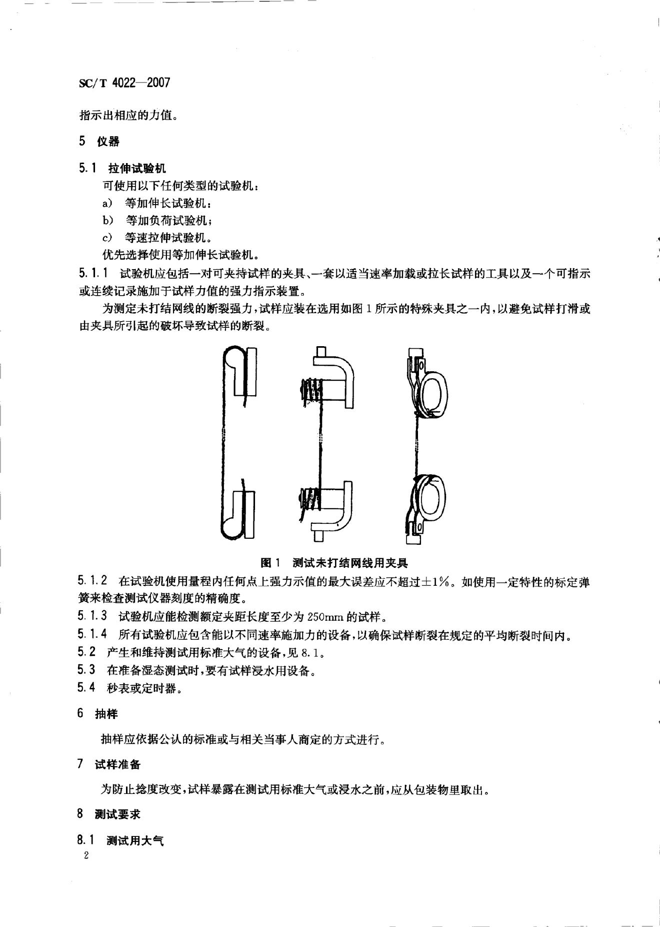 SC/T 4022-2007 渔网 网线断裂强力和结节断裂强力的测定
