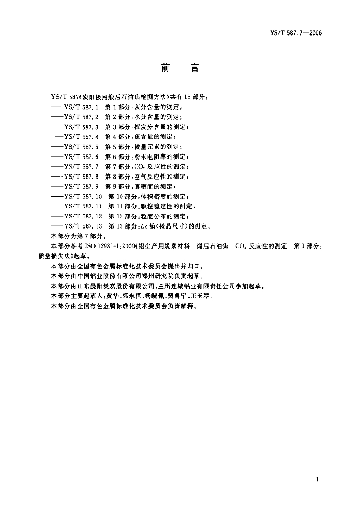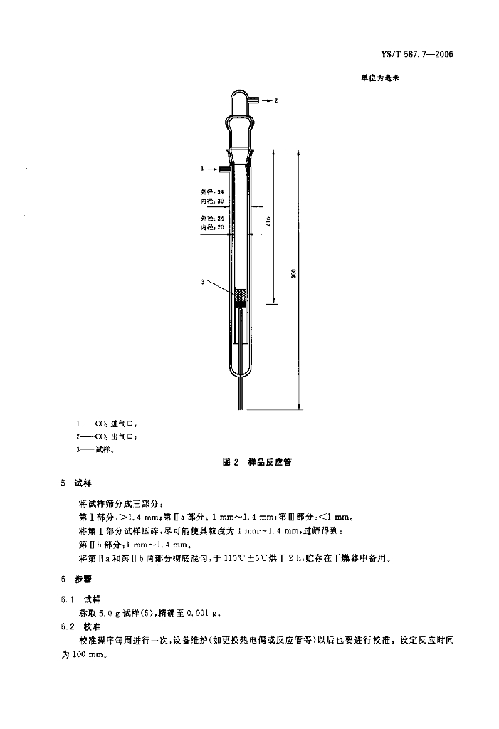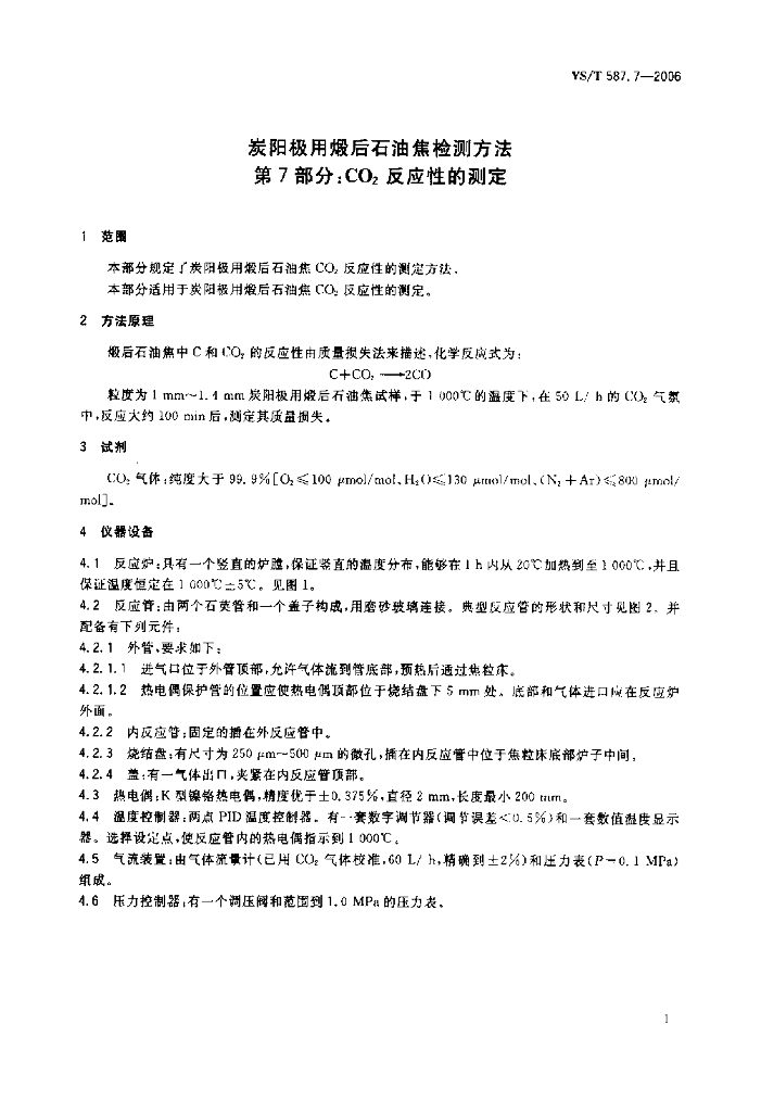 YS/T 587.7-2006 炭阳极用煅后石油焦检测方法 第7部分:CO2反应性的测定