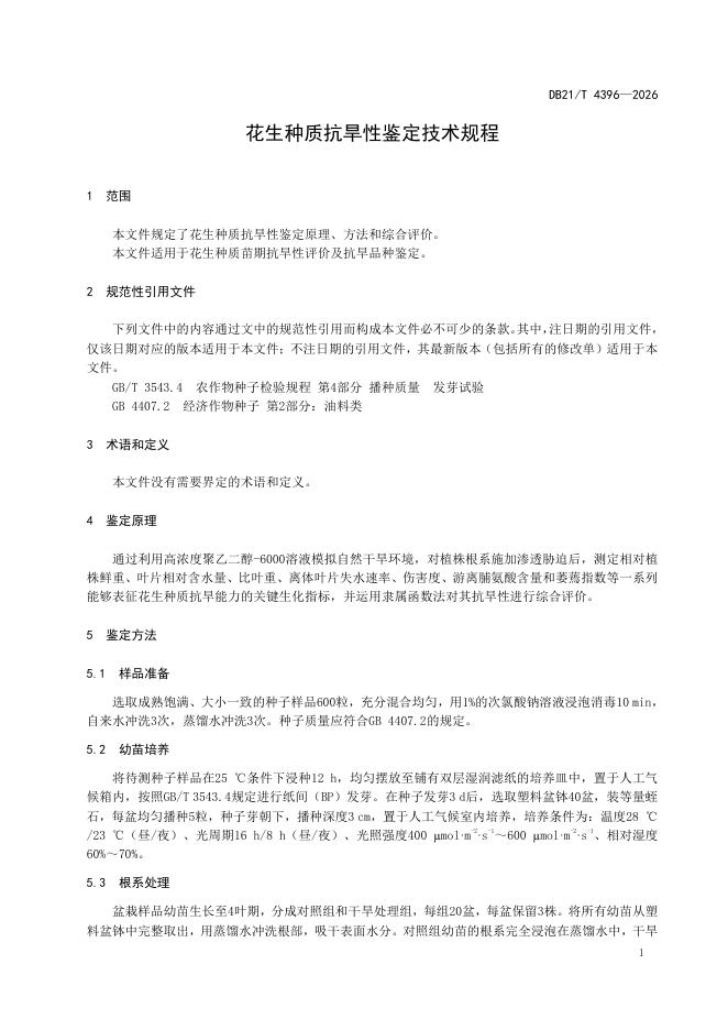 DB21/T 4396-2026 花生种质抗旱性鉴定技术规程