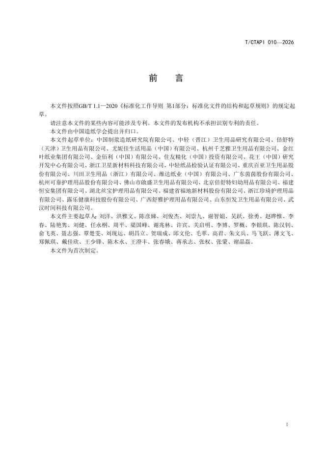 T/CTAPI 010-2026 抑菌一次性吸收卫生用品