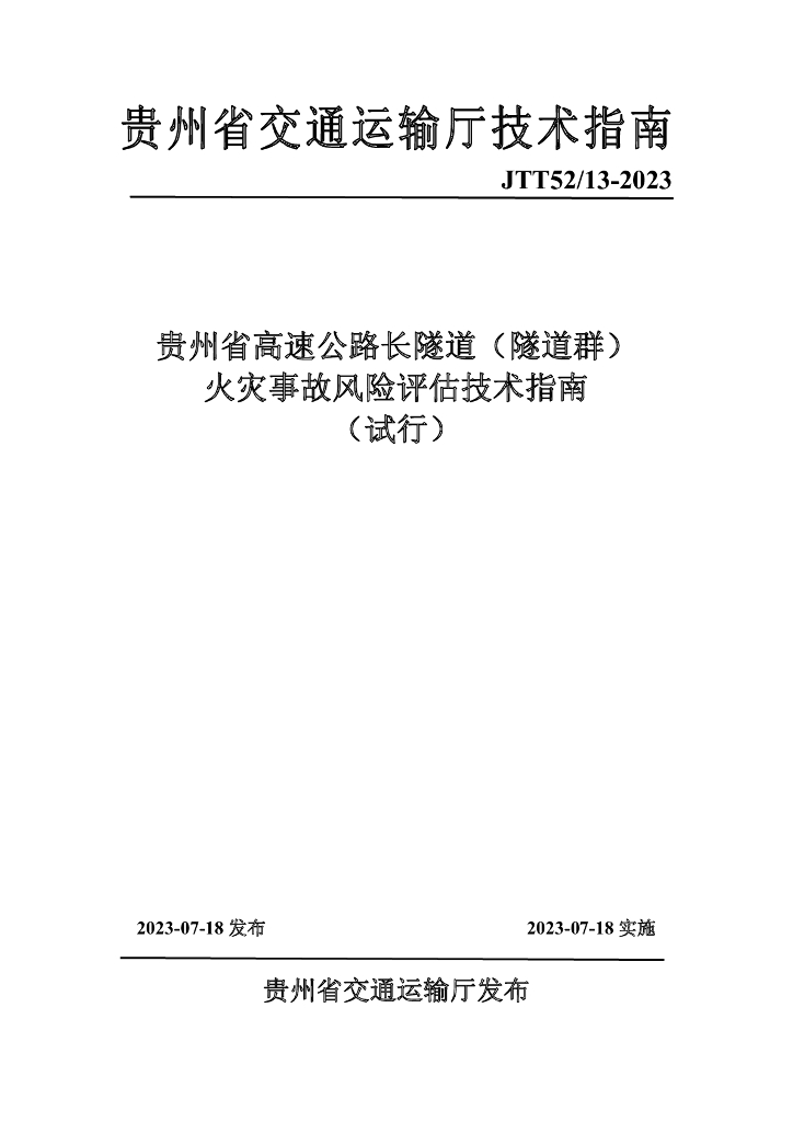 JT/T 52/13-2023 贵州省高速公路长隧道(隧道群)火灾事故风险评估技术指南(试行)