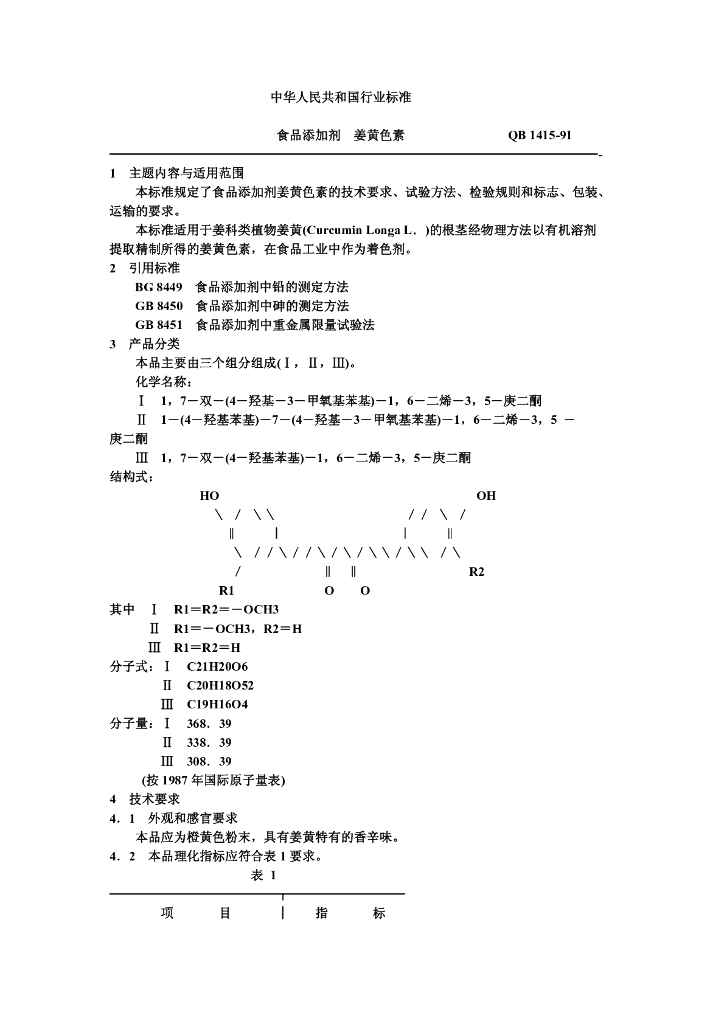 QB 1415-1991 食品添加剂姜黄色素