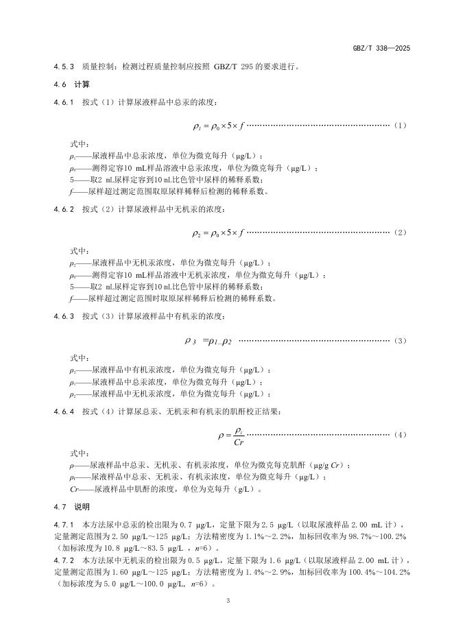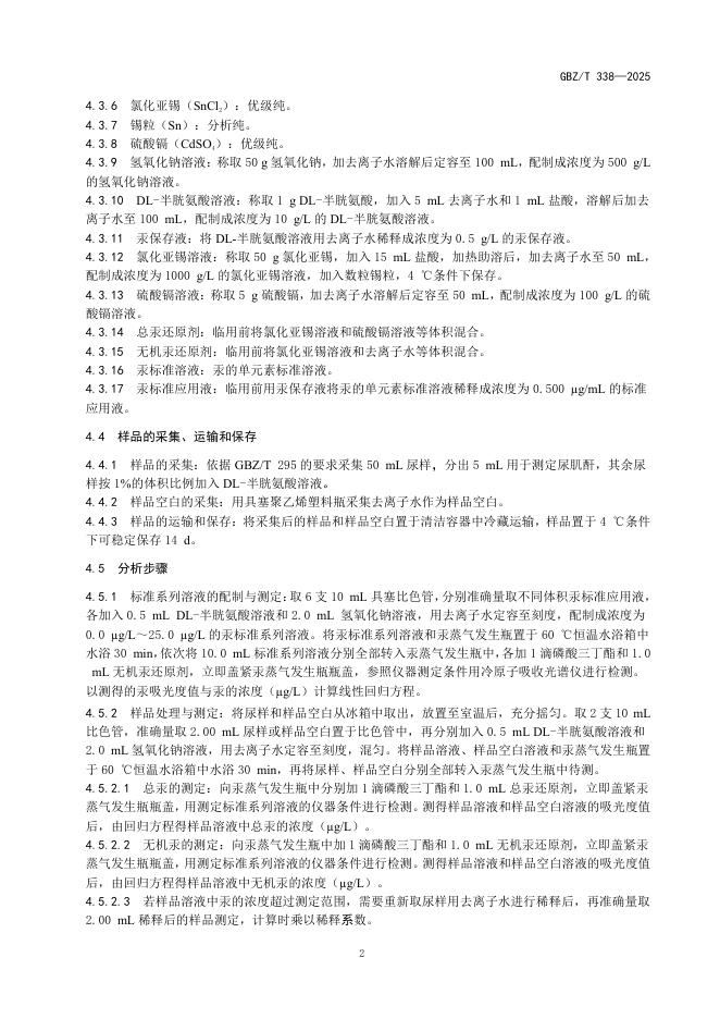 GBZ/T 338-2025 尿中汞测定标准 冷原子吸收光谱法