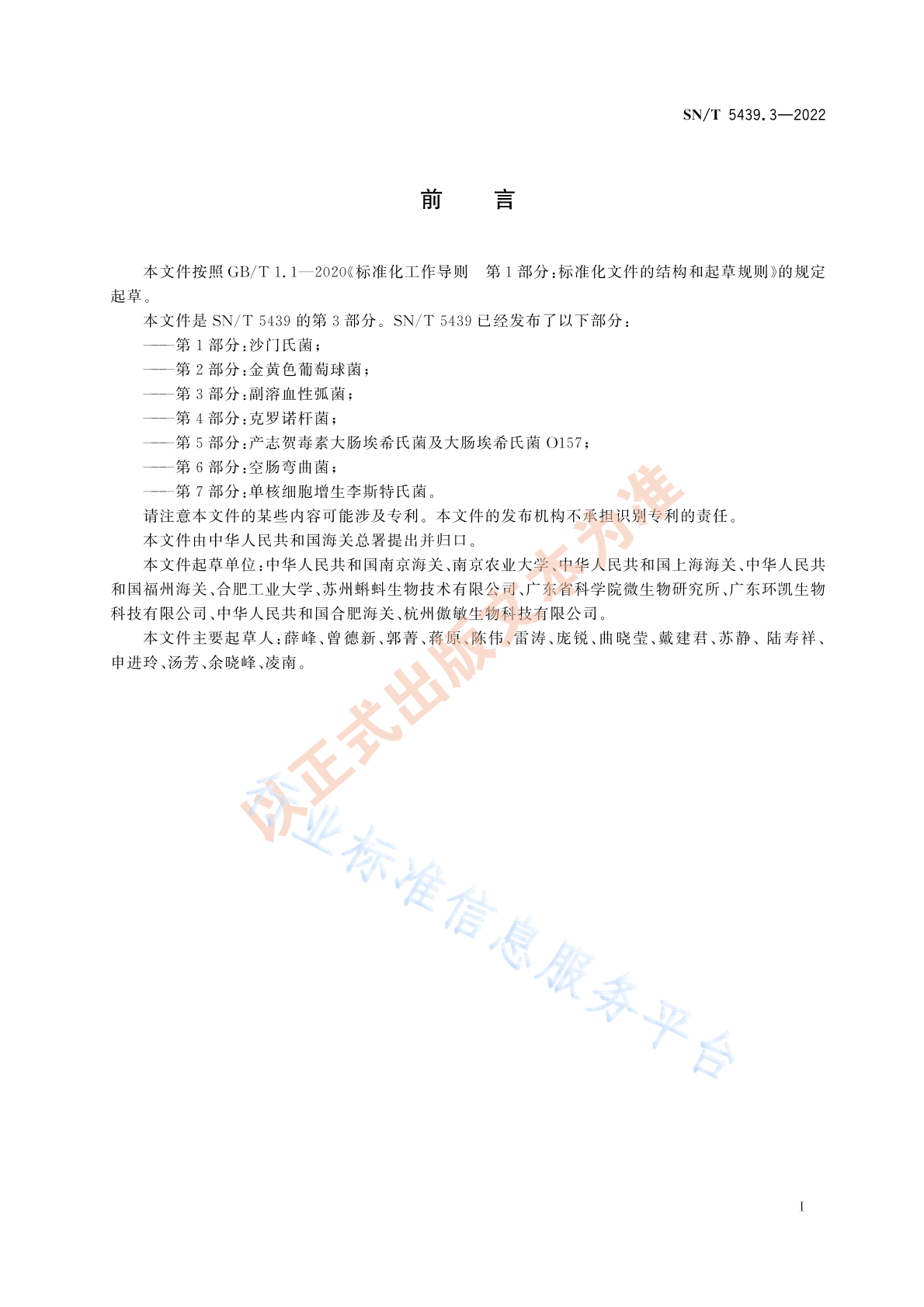 中华人民共和国南京海关、南京农业大学、中华人民共和国上海海关、中华人民共和国福州海关、合肥工业大学、苏州蝌蚪生物技术有限公司、广东省科学院微生物研究所、广东环凯生物 科技有限公司、中华人民共和国合肥海关、杭州傲敏生物科技有限公司