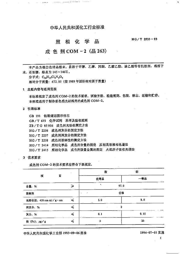 HG/T 2533-1993 照相化学品 成色剂COM-2(品263)