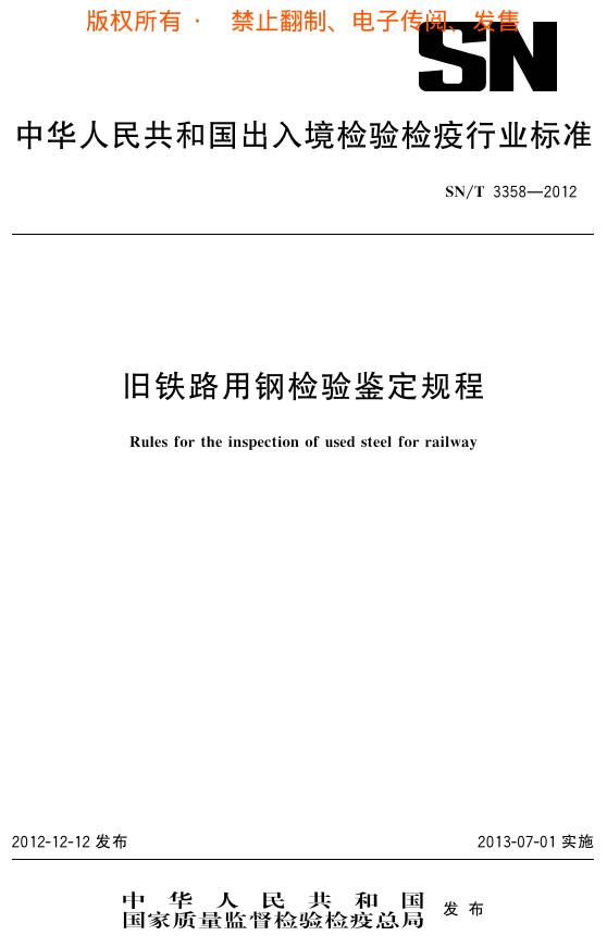 SN/T 3358-2012 旧铁路用钢检验鉴定规程