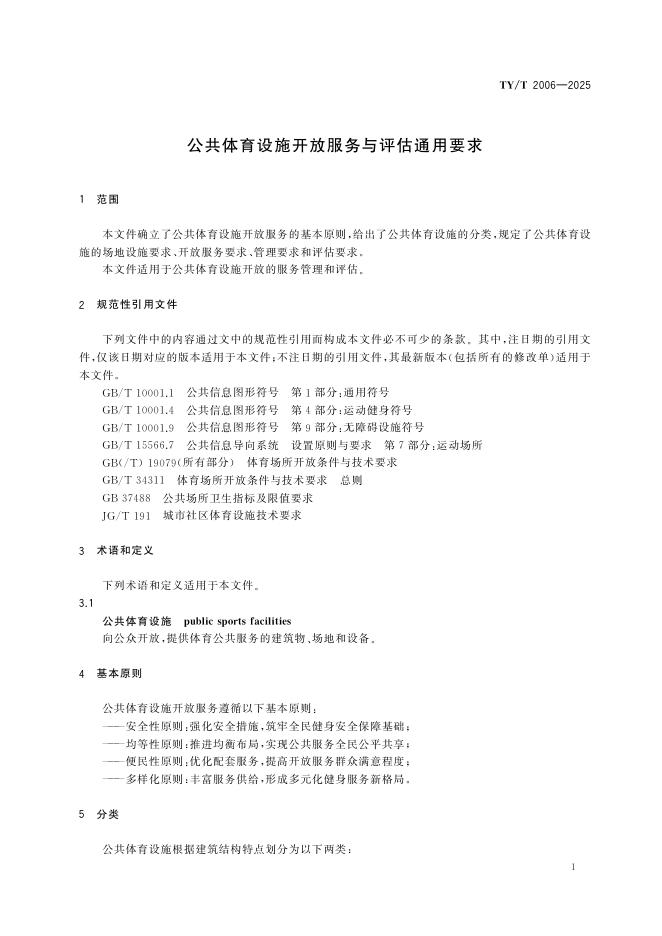 TY/T 2006-2025 公共体育设施开放服务与评估通用要求