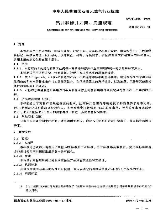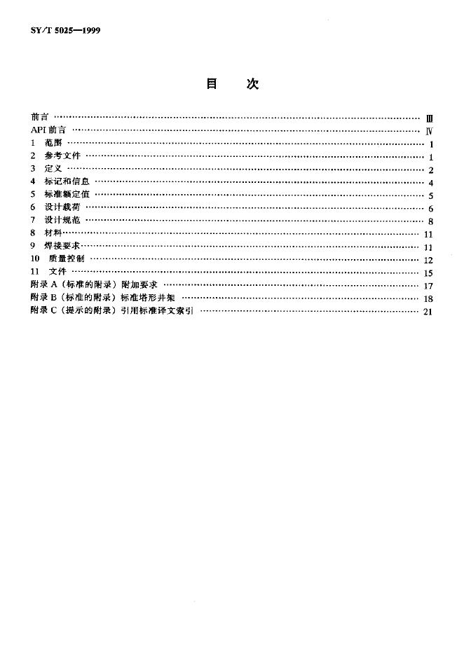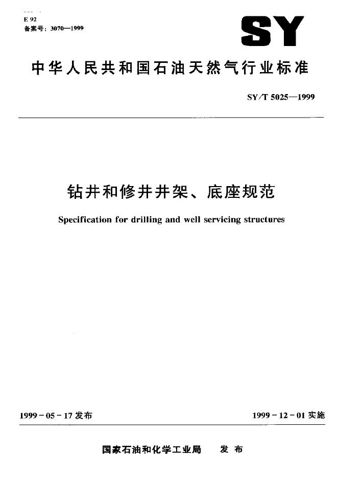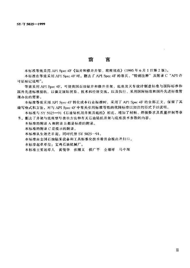 SY 5025-1991 石油钻机用井架及底座