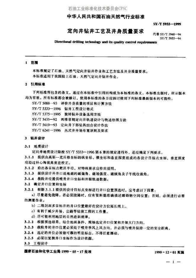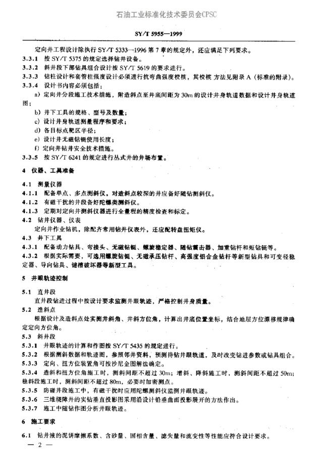 SY/T 5955-1994 定向钻井工艺技术要求