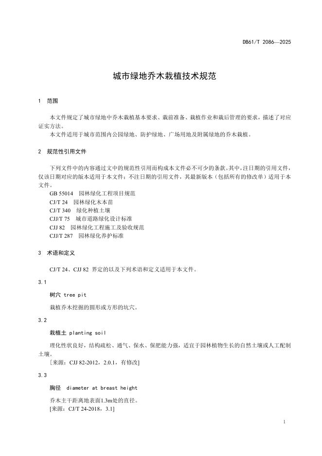 DB61/T 2086-2025 城市绿地乔木栽植技术规范
