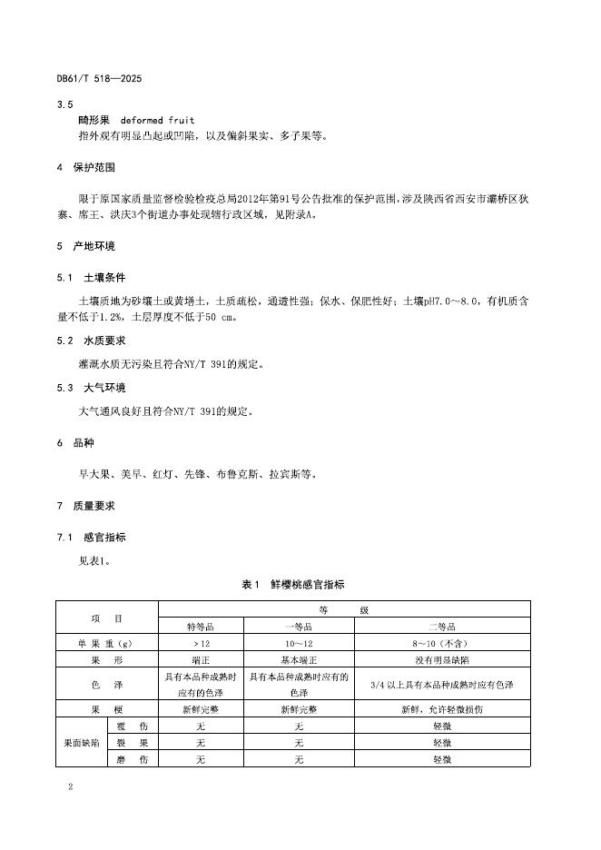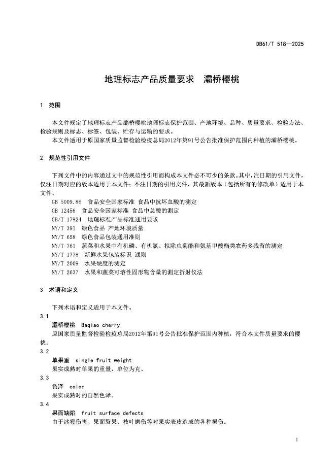 DB61/T 518-2025 地理标志产品质量要求 灞桥樱桃