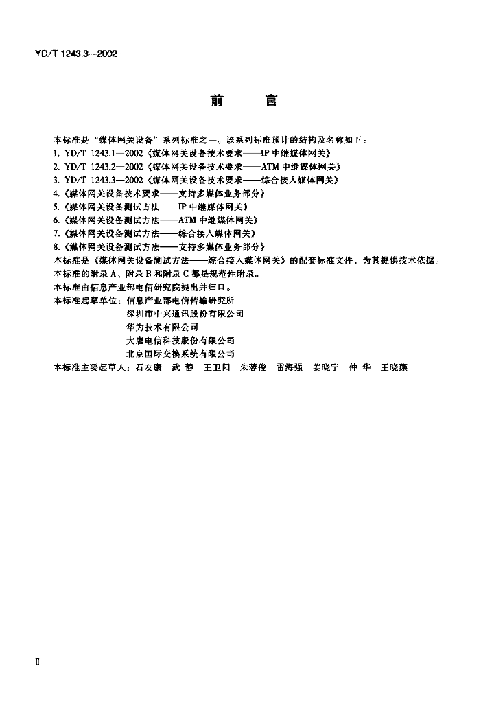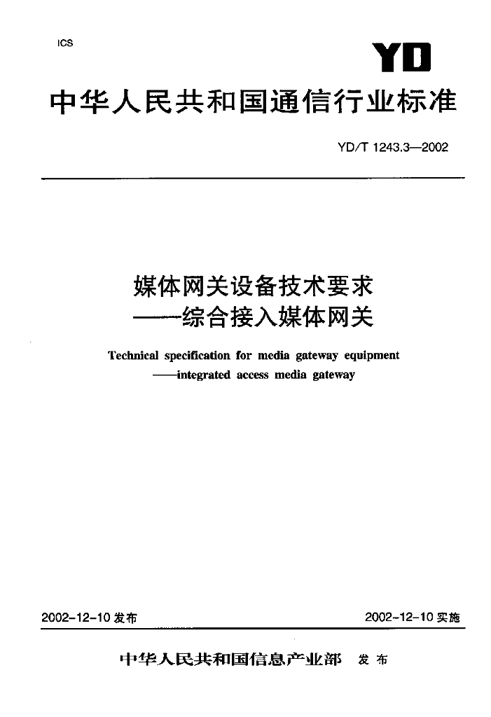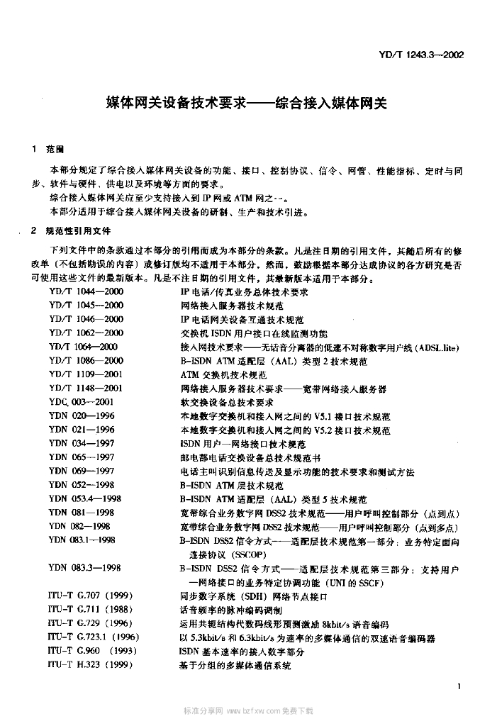 YD/T 1243.3-2002 媒体网关设备技术要求——综合接入媒体网关