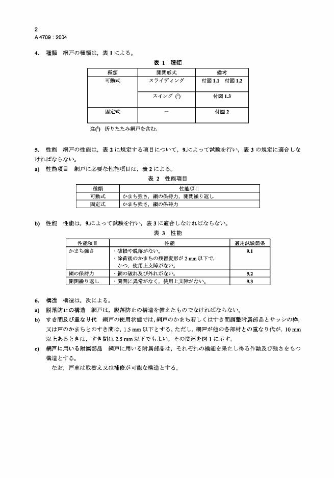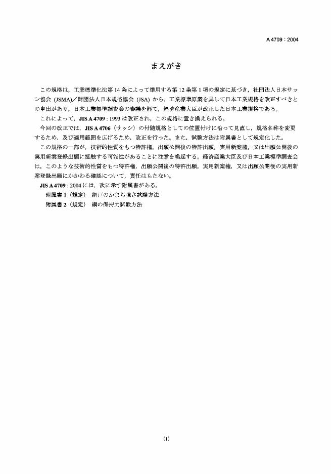 JIS A4709-2004 滑动铝合金窗用纱窗
