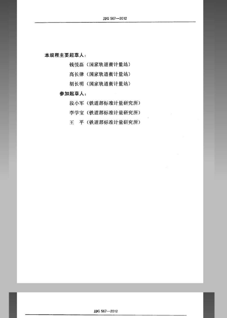 钱悦磊(国家轨道衡计量站)、高长律(国家轨道衡计量站)、胡长明(国家轨道衡计量站)、段小军(铁道部标准计量研究所)、李学宝(铁道部标准计量研究所)、王平(铁道部标准计量研究所)