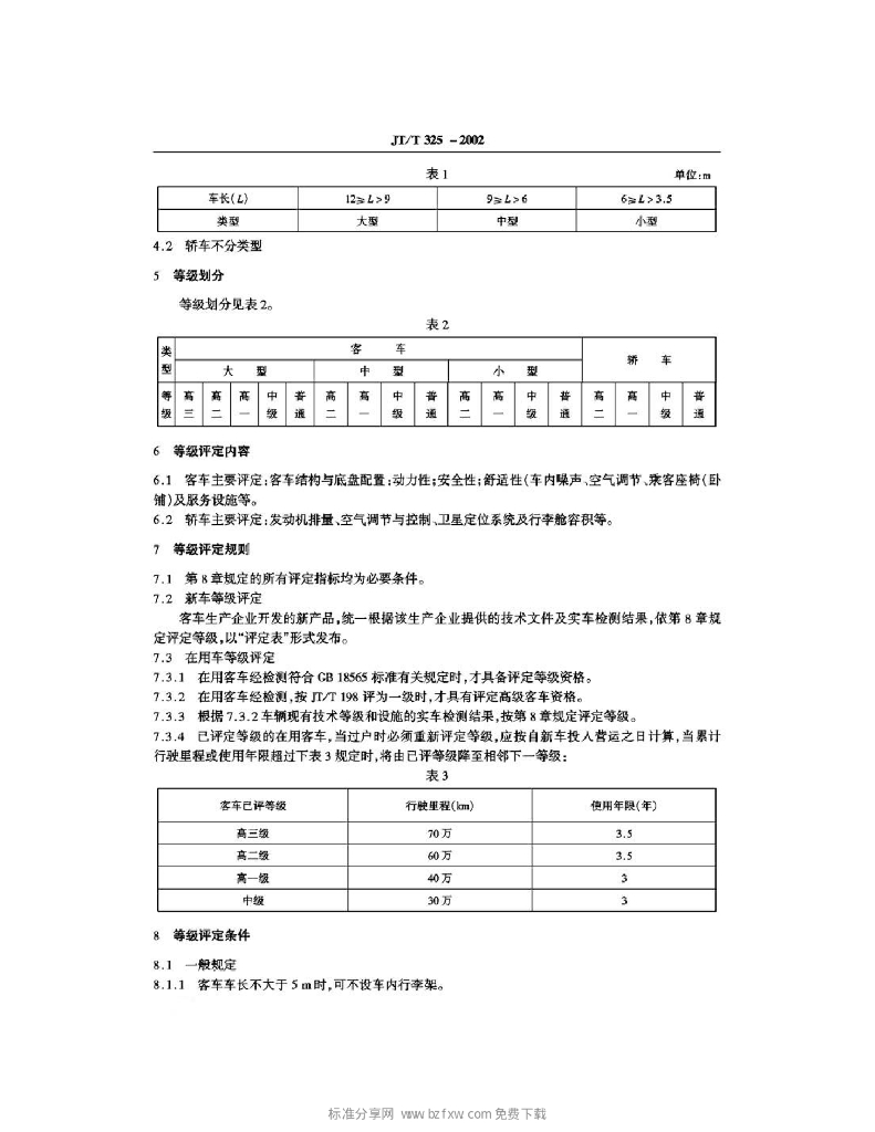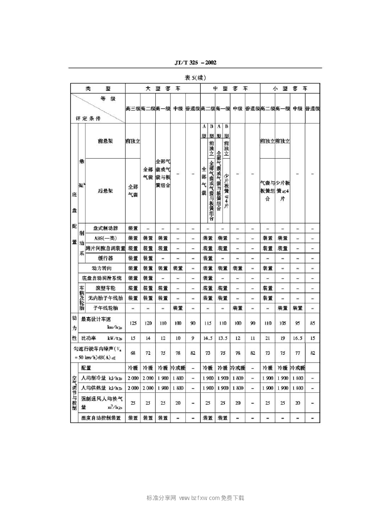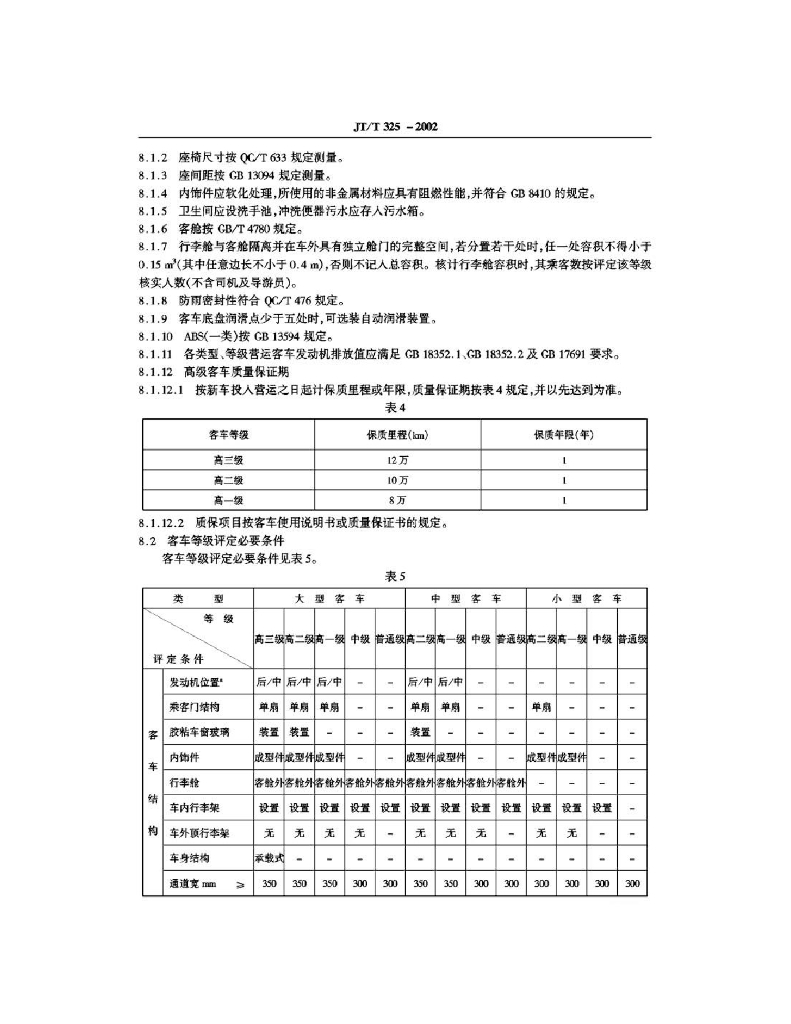 JT/T 325-2002 营运客车类型划分及等级评定