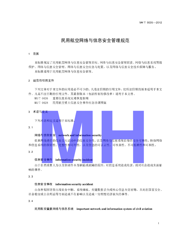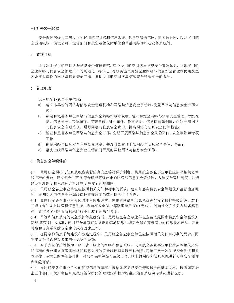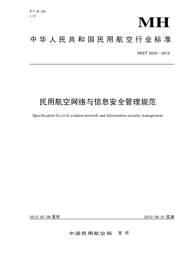 MH/T 0035-2012 民用航空网络与信息安全管理规范