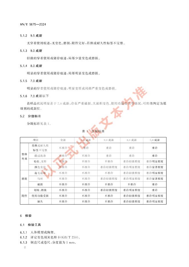 SN/T 5675-2024 进出口纺织品 奢侈品服装的评定 新旧程度