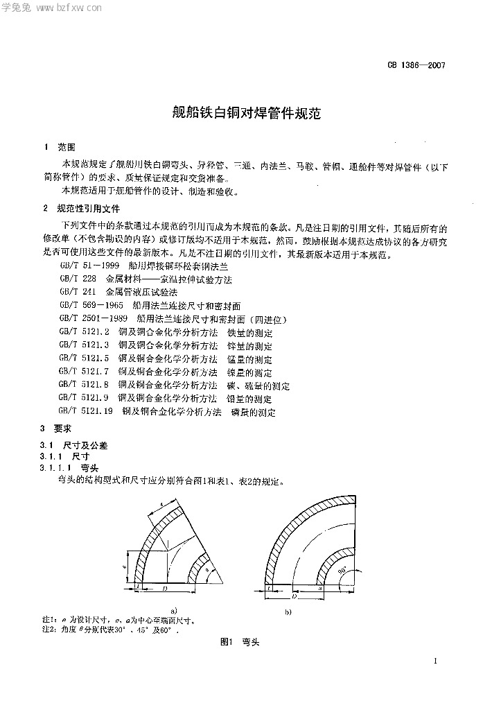 CB 1386-2007 舰船铁白铜对焊管件规范