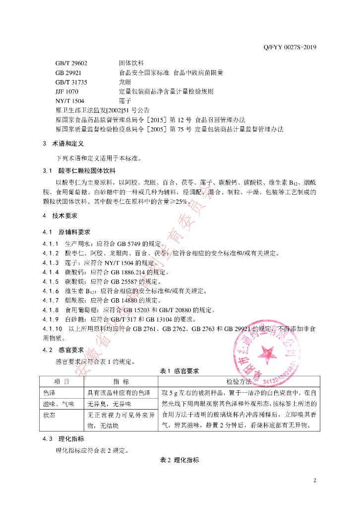 Q/FYY 0027S-2019 酸枣仁颗粒(固体饮料)