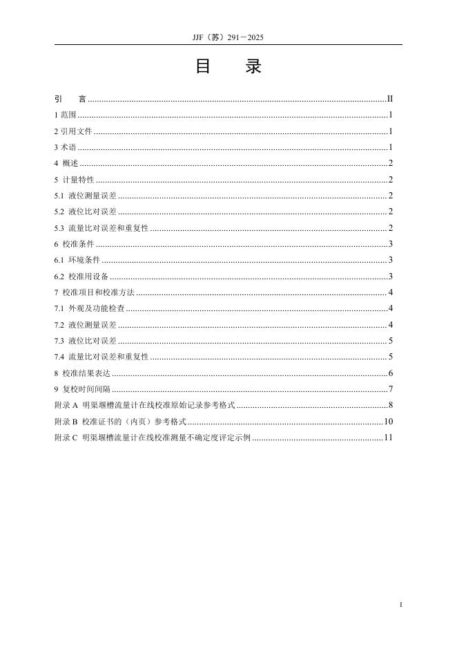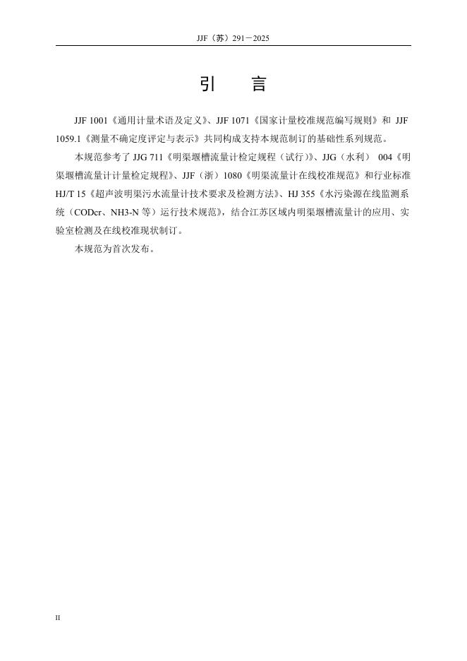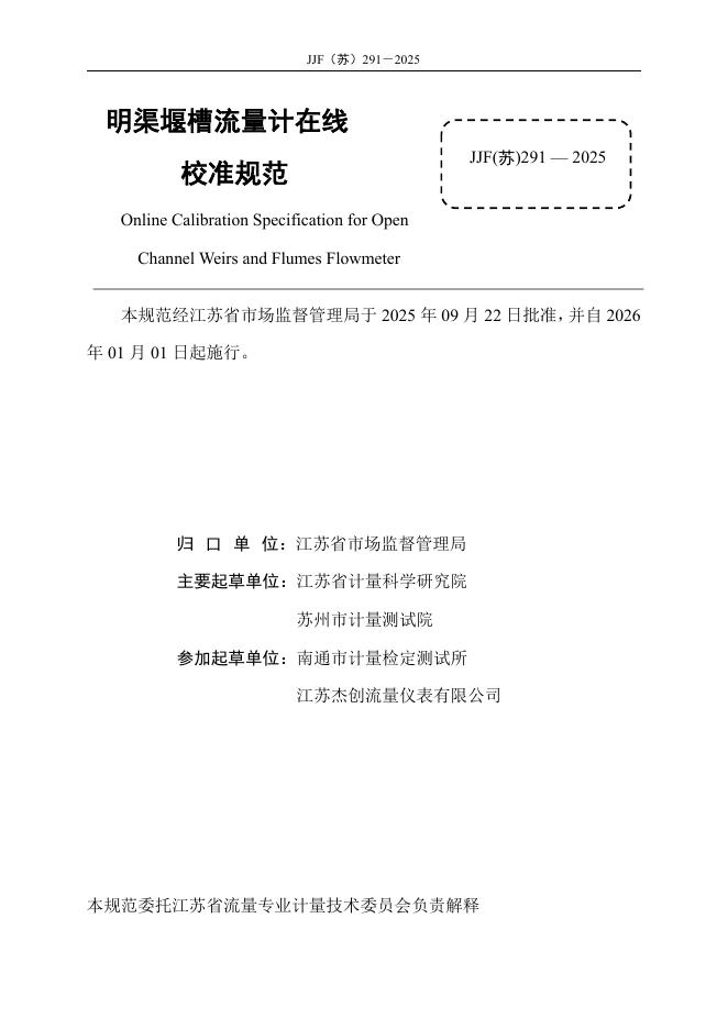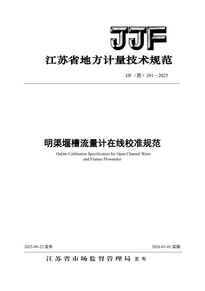 JJF(苏)291-2025 明渠堰槽流量计在线校准规范