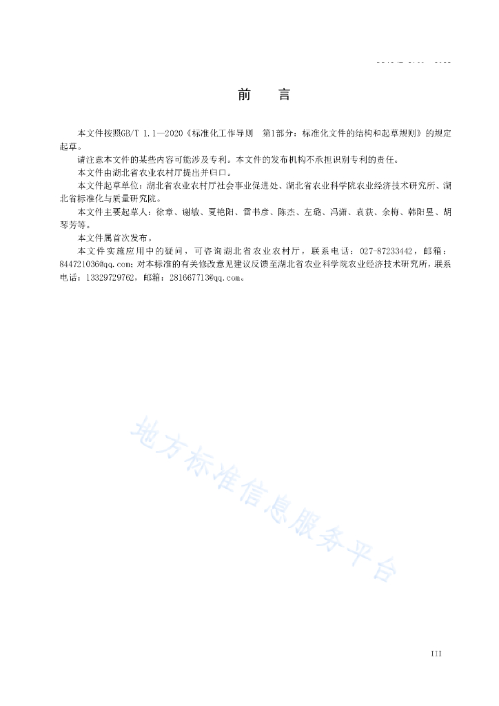 湖北省农业农村厅社会事业促进处、湖北省农业科学院农业经济技术研究所、湖北省标准化与质量研究院