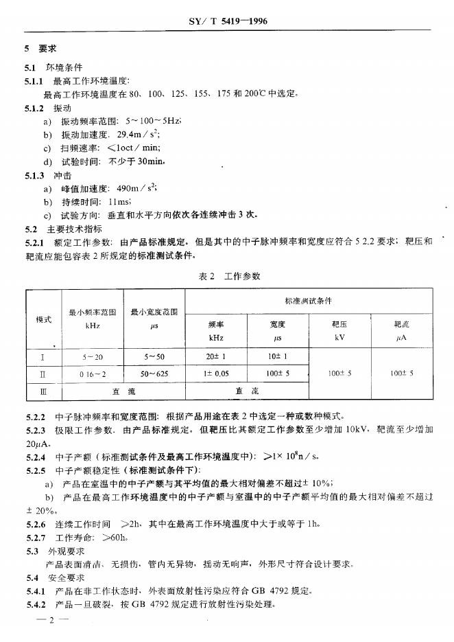 SY/T 5419-1991 测井用密封中子管技术条件
