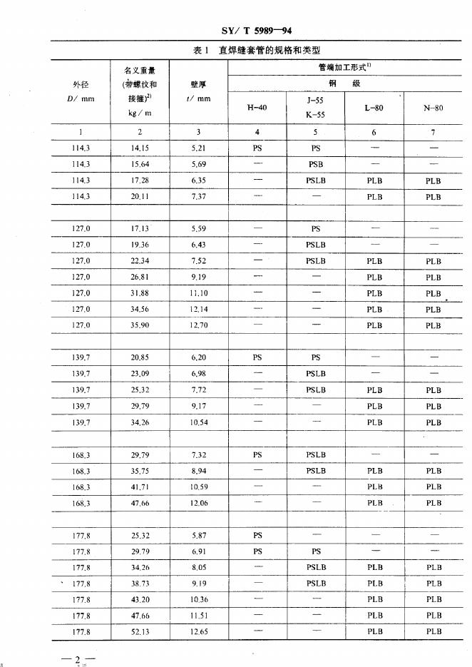 SY/T 5989-1994 直焊缝套管国外订货技术条件