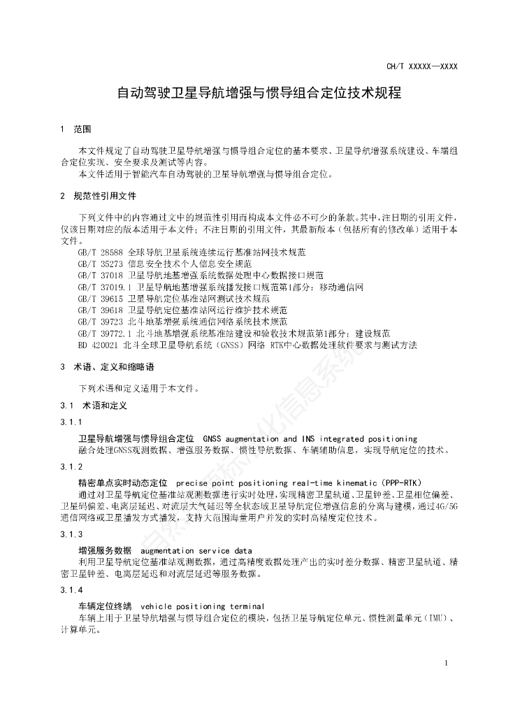 CH/T 2022-2024 自动驾驶卫星导航增强与惯导组合定位技术规程