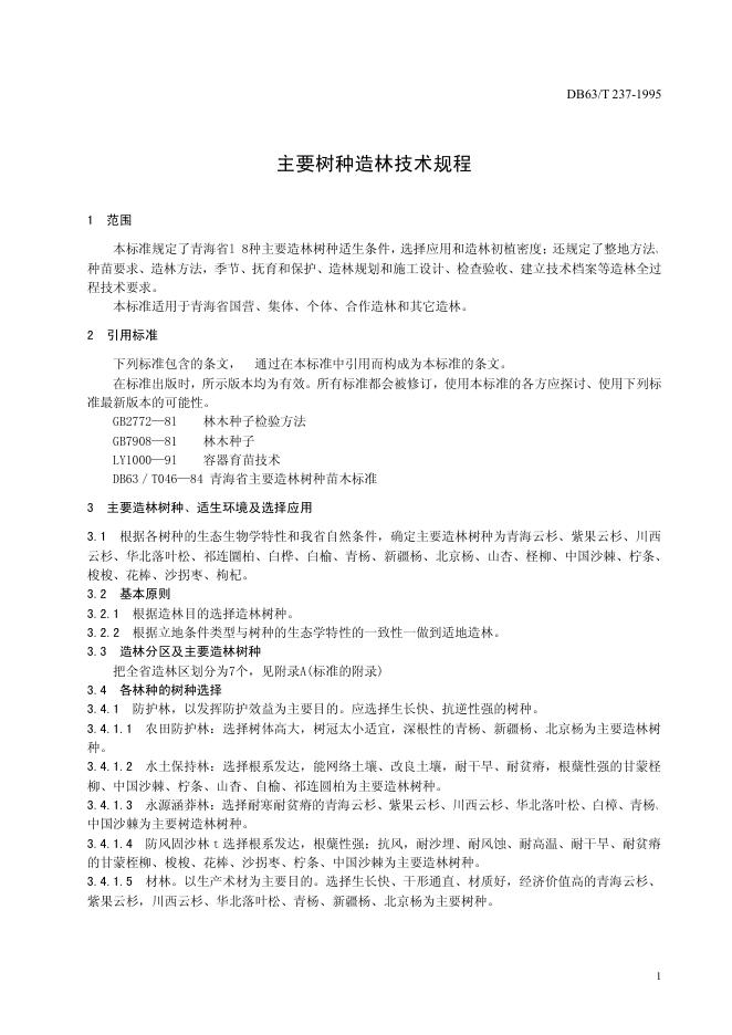 DB63/T 237-1995 主要树种造林技术规程