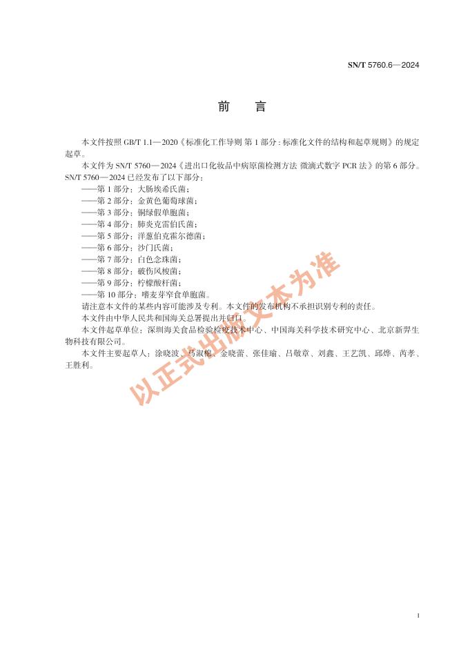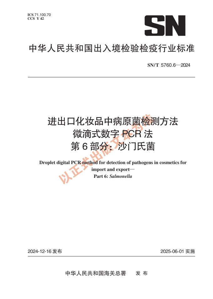 SN/T 5760.6-2024 出口化妆品中病原菌检测方法 微滴式数字PCR法 第6部分:沙门氏菌