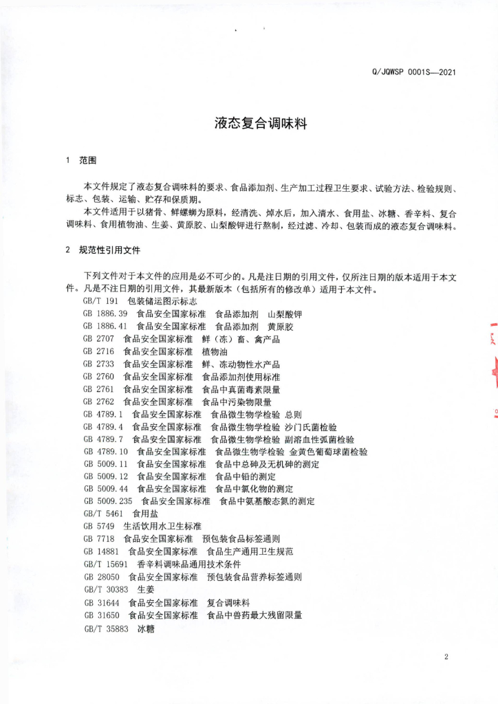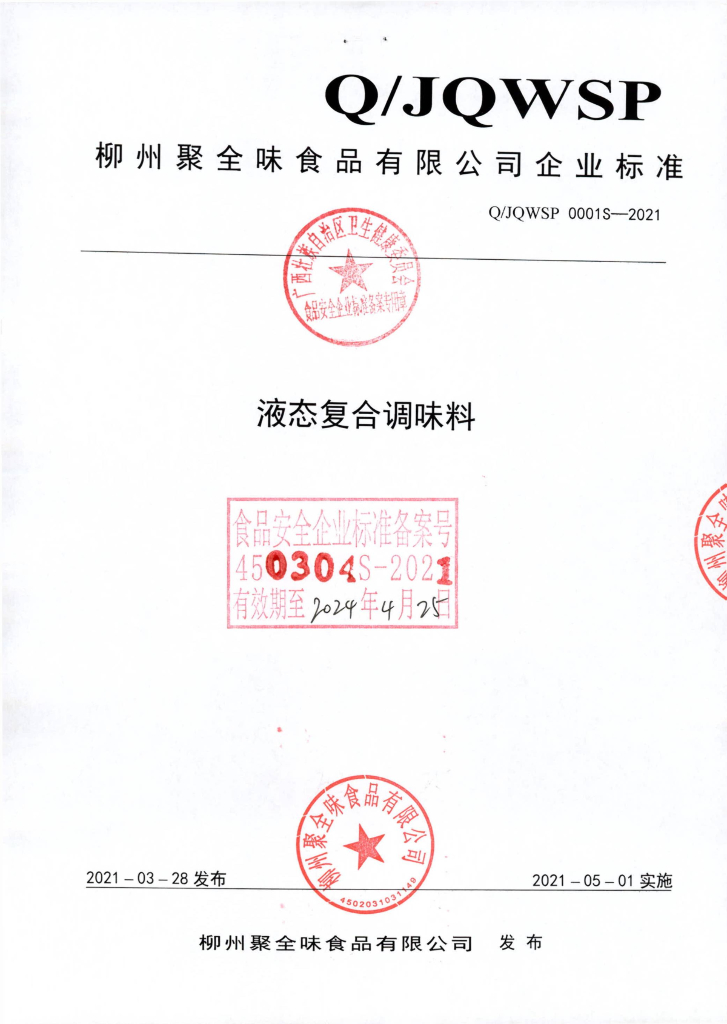 Q/JQWSP 0001S-2021 液态复合调味料