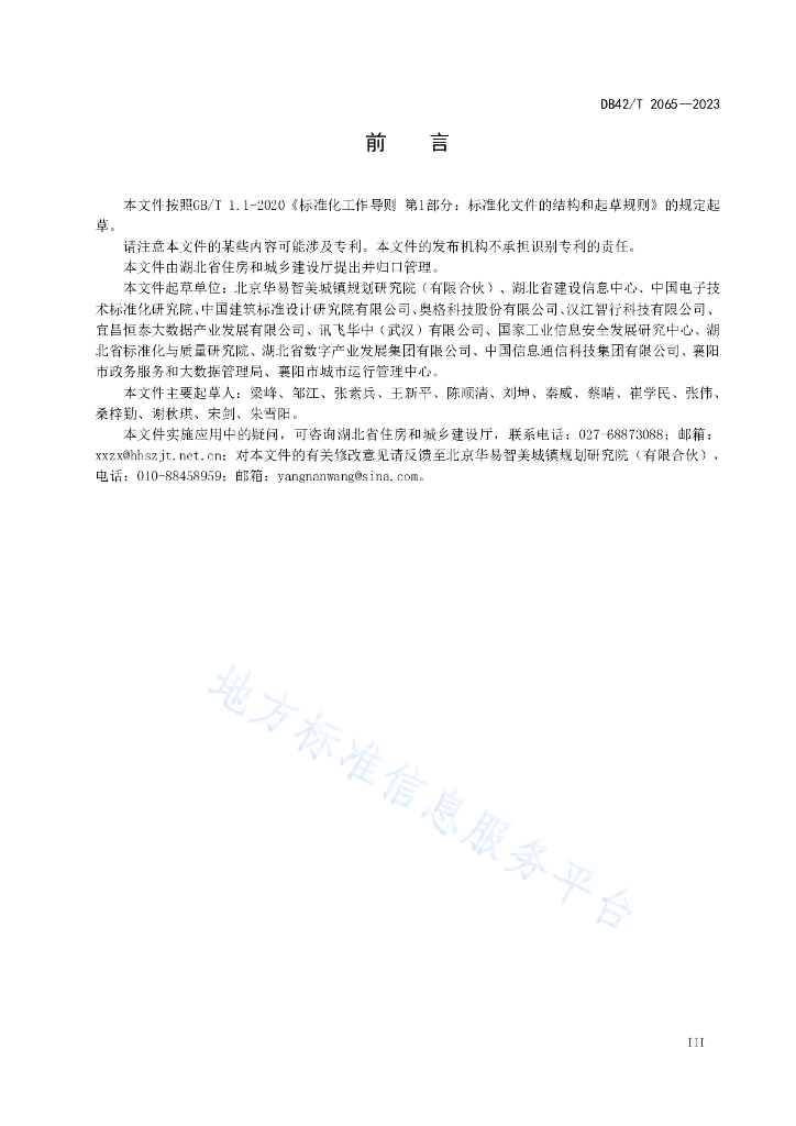 北京华易智美城镇规划研究院(有限合伙)、湖北省建设信息中心、中国电子技术标准化研究院、中国建筑标准设计研究院有限公司、奥格科技股份有限公司、汉江智行科技有限公司、宜昌恒泰大数据产业发展有限公司、讯飞华中(武汉)有限公司、国家工业信息安全发展研究中心、湖北省标准化与质量研究院、湖北省数字产业发展集团有限公司、中国信息通信科技集团有限公司、襄阳市政务服务和大数据管理局、襄阳市城市运行管理中心