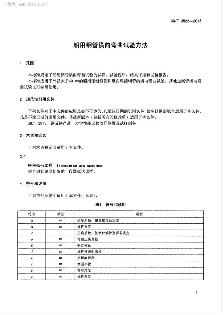 CB/T 3522-2016 船用钢管横向弯曲试验方法