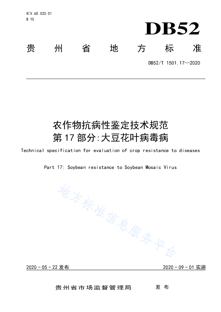 DB52/T 1501.17-2020 农作物抗病性鉴定技术规范 第17部分:大豆花叶病毒病