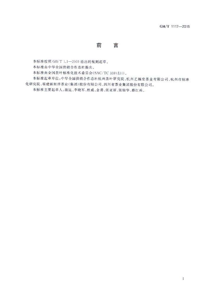 中华全国供销合作总社杭州茶叶研究院、杭州艺福堂茶业有限公司、杭州市标准化研究院、福建新坦洋茶业(集团)股份有限公司、四川省茶业集团股份有限公司