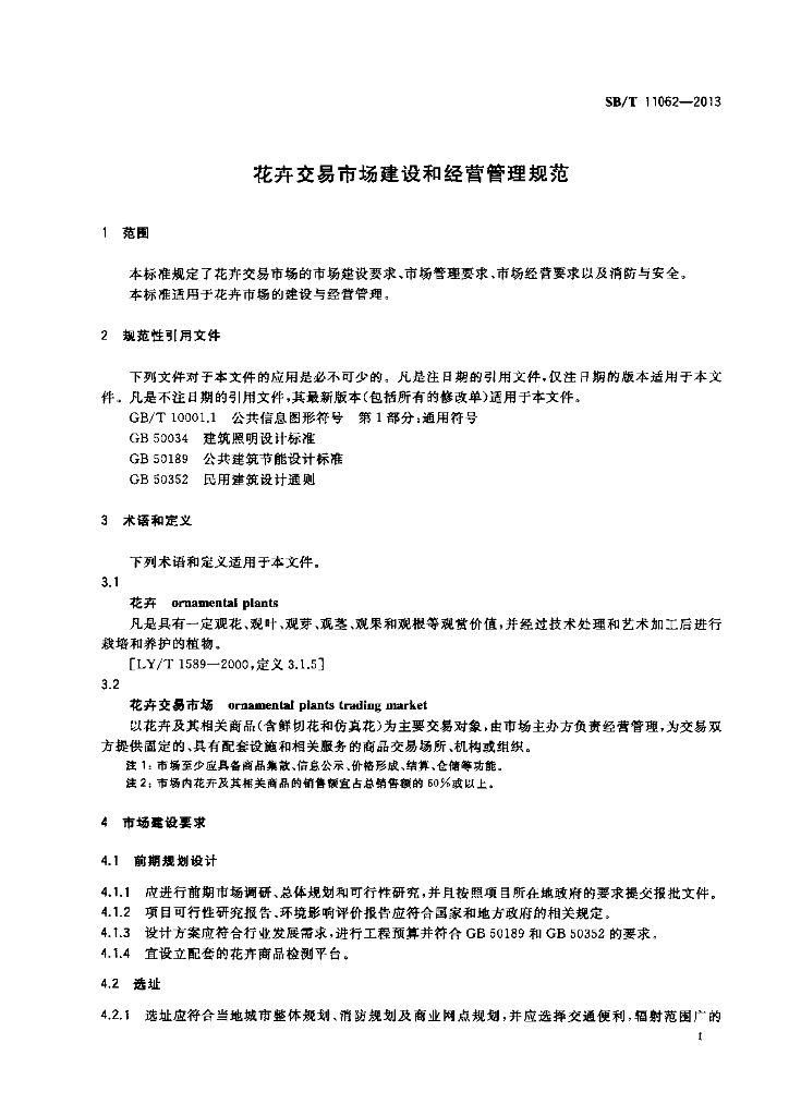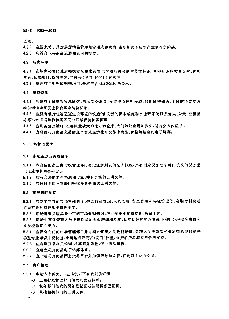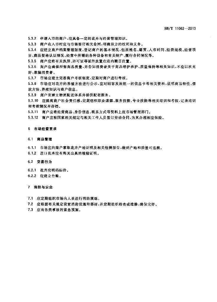 SB/T 11062-2013 花卉交易市场建设和经营管理规范