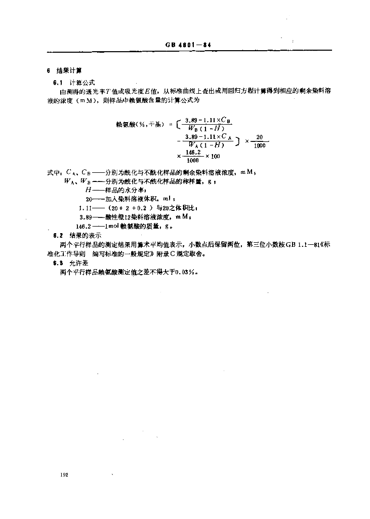 NY/T 9-1984 谷类籽粒赖氨酸测定法 染料结合赖氮酸(DBL)法
