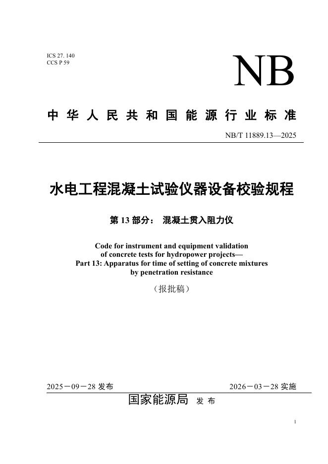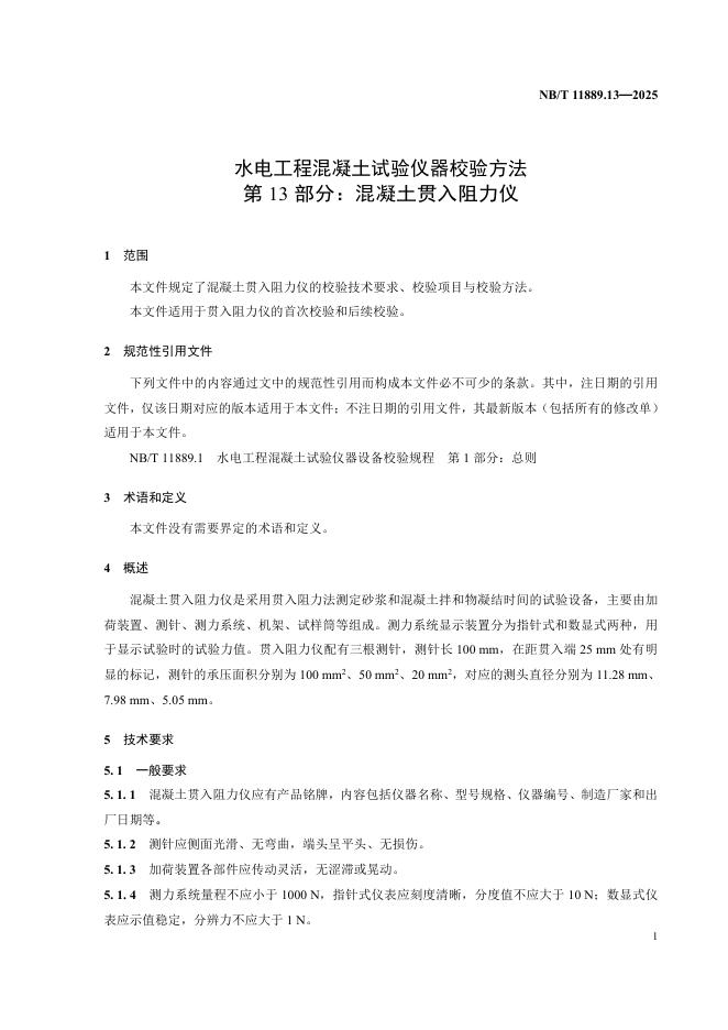 NB/T 11889.13-2025 水电工程混凝土试验仪器设备校验规程 第13部分:混凝土贯入阻力仪