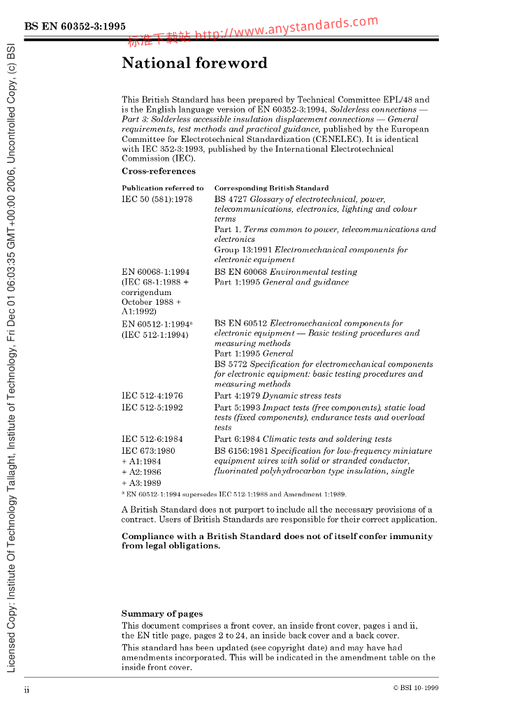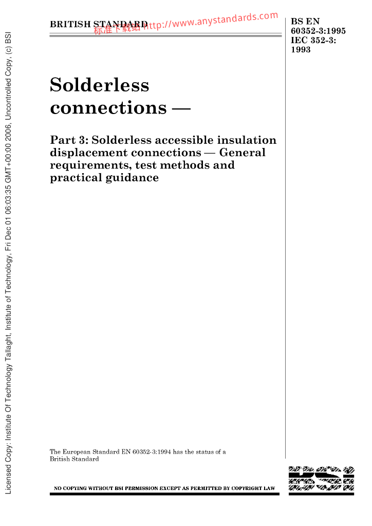 BS EN 60352-3-1995 无焊连接.第3部分.无焊可达绝缘置换连接.一般要求,试验方法和实施指南